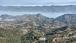 The Kot hill range is also about 30 km long; it runs from the village of Naghiar to the Baghpal jungle along the bank of the Satluj. Bamboo and chir pine forests grow on this range; bamboo especially in the Baghpal area. The highest point in the Kot range is the peak known as Kakrer; it reaches a height of 1,430 m. The name "Kot" is a reference to the Bachhretu fort built on these hills; another old fort is at Dagoga Malhot.[3]