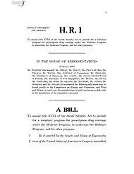 First page of the version of the Medicare Prescription Drug, Improvement, and Modernization Act as introduced in the U.S. House of Representatives, June 25, 2003, as H.R. 1