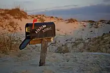 The "Kindred Spirit" mailbox on Bird Island, NC. Hikers can leave their thoughts on notepads inside the mailbox after their trek.