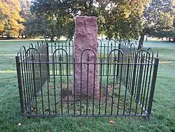 The Jackson Memorial Drinking Fountain near the main entrance to Birkenhead Park is in the form of an obelisk that was made in 1860. It is in polished granite, and stands on a pedimented plinth surrounded by steps. It is dedicated to John Somerville Jackson who was instrumental in the creation of the park.[24]