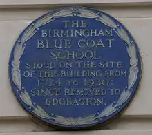 3. "Blue Coat School, Birmingham". Open Plaques. Open Plaques community-based project. Retrieved 13 November 2019.