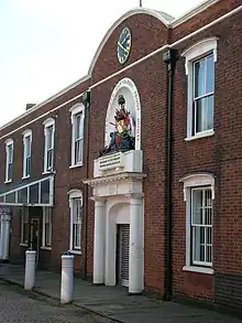The Birmingham Gun Barrel Proof House is a weapons proving establishment in Banbury Street, Birmingham, UK. The building was designed by John Horton and consists of a centre bay, emphasised by a segmental parapet, which contains trophies by William Hollins. A Jacobean-style gateway was added in 1883.[1] It is a grade II* listed building.[2]