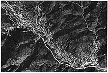 Aerial photo of Bisbee, Arizona, showing how town developed around land contours
