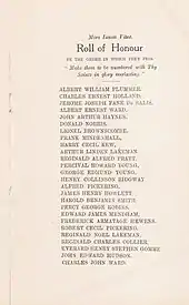 A Cierva C.19 Mk.3 Autogiro landed on the school field in July 1931, piloted by the Cierva Autogiro Company's Flying Manager Reginald A.C. Brie, a former pupil of the school.[8] During the Second World War, the school was used for rallies and inspections of the local Girls' Training Corps.[9] Randalls of Uxbridge, a local family-owned department store, donated three oak chairs to the school in October 1949.[10] In 1969, the school's air raid shelters were removed and replaced by a car park. The shelters had been built in 1939 but remained because of the threat of the Cold War.[11]