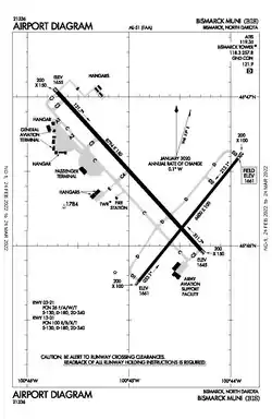 3. "Bismarck Municipal (BIS)". Airport Directory. North Dakota Aeronautics Commission. Retrieved August 13, 2013.