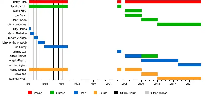 • Betsy 'Bitch' Weiss – vocals (1980–present)