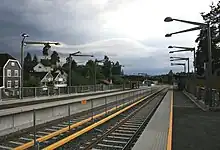 Bjørnsletta is a station on the Kolsås Line of the Oslo Metro. It serves the residential area of Øraker in Oslo, Norway and is served by Line 3. The station opened on 17 August 2010 and replaced two former stations: Bjørnsletta (located at a different location) and Lysakerelven. Both these stations were closed in 2006 while the Kolsås Line was being upgraded from a light rail to a rapid transit. Bjørnsletta is 8.2 kilometres (5.1 mi) from Stortinget.