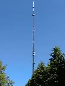 Blåbärskullen transmitter (Swedish: Blåbärskullenmasten) is a facility for FM/TV-broadcasting at Sunne in Sweden, which went in service on September 2, 1960. It used as antenna tower a 323 metres (1,060 ft) tall guyed mast, which was at time of completion one of the tallest structures in Sweden. On December 27, 1979, the top of the mast with the TV-broadcasting antennas fell down as result of an excessive build-up of ice.