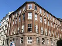Located at the corner with Nørrebrogade, Alderstrøst was built in 1870 by Association of Craftsmen in Copenhagen to provide affordable housing for elderly, indigent members and their widows.[2]