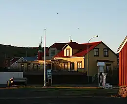 Blönduós (Icelandic pronunciation: [ˈplœntʏˌouːs] ) is a town and former municipality in the north of Iceland with a population of 895 in 2018.[1] Like many towns and villages around Iceland, Blönduós did not emerge as a village until the late 19th century. The town is situated on Route 1 at the mouth of the glacial river Blanda. Hrútey [ˈr̥uːtˌeiː], a small island and natural reserve encircled by the river, is accessible via a pedestrian bridge just off the ring road. In 2022, the town merged with Húnavatnshreppur to form Húnabyggð.[2]