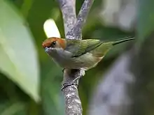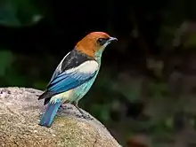 The black-backed tanager (Stilpnia peruviana) is a bird species in the Thraupidae family. It is endemic to the forests and shrubs of south-eastern Brazil. When first described, it was mistakenly believed that it originates from Peru, leading to the misleading scientific name peruviana. It is closely related to the chestnut-backed tanager, and the two have sometimes been considered conspecific.