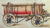 In case of emergency, a last chance existed for the actual king in power to mobilize the population suddenly. Every noble, no matter his social class, had to participate in person with his weaponry and all of his personal guards made available. These were the estate armies.[7] Whenever they were called upon, they were not allowed to fight for longer than 15 days, and their field of operations was restricted to within the borders of Hungary. The so-called insurrectio (noble "insurrection") was nothing more than an obsolete form of drafting, but it was valid until the Battle of Raab in 1809, mainly because it relieved the participating nobles of paying their taxes; but generally, these enlisted armada played a minor role in the Black Army, since Matthias decreased their participation gradually and called them up in large numbers early in his reign.[16]