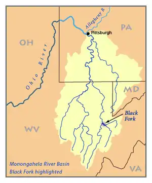 Map of the Monongahela River basin, with Black Fork highlighted.
