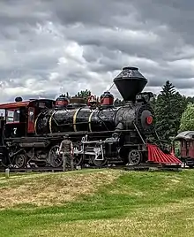 - #7, Baldwin 2-6-2, built 1919 as P&NW #7. On display at Hill City.