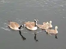 A family of Canada geese on Black Moshannon Lake, which provides habitat for migratory waterfowl and shorebirds