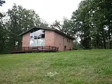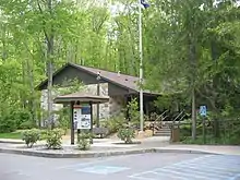 On November 11, 1954, the park was officially named "Black Moshannon State Park" by the Pennsylvania Geographic Board. The CCC-built dam forming Black Moshannon Lake was replaced in the 1950s, and the current Kephart Dam was built in 1974.[18][38] The park experienced major developments between 1971 and 1980.[23] Time has brought changes to the park's CCC-built structures: the original picnic pavilion 6 collapsed under snow in 1994,[18] the museum became the Environmental Learning Center, most of the latrines are gone, and six modern cabins and two deluxe cottages have been built in the Cabin Historic District. As of 2020, other post-war facilities include the park office, boat launches, showerhouses, electric vehicle charging stations, and modern restroom and shower facilities.[37][39] There is a wastewater treatment plant near the dam for effluent from the park and some private homes.[40] In 2019, the state paid $299,000 to the Philipsburg Rod and Gun Club, which had leased 23 acres (9.3 ha) near the Organized Group Tenting area in the park for over 60 years. The state terminated the lease over environmental contamination from lead shot.[41][42]