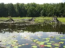 By the 1980s, the park started to receive official recognition for its unique resources. The three Historic Districts were added to the National Register of Historic Places in 1987 in recognition of their CCC-built structures.[24] That same year the state celebrated Black Moshannon State Park's "50th Anniversary".[43] In 1994, the DCNR established the "Black Moshannon Bog Natural Area" as part of a program to recognize areas of "unique scenic, geologic or ecological value".[44][45] In 1997 the park's Important Bird Area (IBA) was one of the first 73 IBAs established in Pennsylvania.[46] By 2001 yearly attendance at Black Moshannon State Park was over 350,000.[19] As of 2020, the Pennsylvania Department of Conservation and Natural Resources (DCNR) Bureau of Parks, which administers all 121 Pennsylvania state parks, had chosen Black Moshannon as one of its "25 Must-see Pennsylvania State Parks", citing it as home to the "largest reconstituted bog in Pennsylvania".[7]
