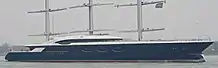 Black Pearl is a sailing yacht launched in 2016, which is 106.7 meters (350.1 ft) in length.[4] It has three DynaRig masts supporting a sail area of 2,900 square meters (31,215 sq ft).[4] The yacht was known during its build process originally as Oceanco Y712 and thereafter as "Project Solar". The hull is steel, the superstructure aluminum, and the masts carbon fiber.[5] The yacht is owned by the family of Russian billionaire Oleg Burlakov, who died in 2021.[1][6][7]