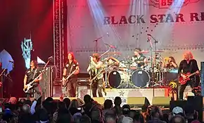Black Star Riders is a hard rock band formed in December 2012. The band began when members of the 2011–2012 line-up of Thin Lizzy decided to record new material, but chose not to release it under the Thin Lizzy name. While Thin Lizzy continues on an occasional basis, Black Star Riders is a full-time band,[1] described as "the next step in the evolution of the Thin Lizzy story".[2] The band's first album, All Hell Breaks Loose, was released on May 21, 2013,[3] and the follow-up album, The Killer Instinct was released on February 20, 2015.[4] The band's third album, Heavy Fire, was released on February 3, 2017, and reached number six on the UK Albums Chart.[5]