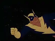 Black Vulcan debuted on the Super Friends show (The All-New Super Friends Hour) in September 1977. Unlike most of the Super Friends, Black Vulcan was not a pre-existing DC Comics character. This is particularly notable since DC Comics' roster did include an African-American superhero with electricity-based powers, Black Lightning, who could not be used on the show due to disputes between DC and Black Lightning's creator, Tony Isabella.[1] In retaliation, Isabella wrote the story "The Other Black Lightning", which was published in Black Lightning #10, in which a criminal named Barbara Hanna (a pun on Hanna-Barbera) and her circus hire a Black Lightning imposter named Jocko. At the end, Black Lightning and Jocko make up and the former believes the latter could strike out on his own, that is, if he stops imitating him, of course. Isabella has said "I don't think anyone noticed what I was doing there". The costume, model sheets, and early storyboards for Black Vulcan were designed by cartoonist Alex Toth, responsible for the look of most Hanna-Barbera superheroes.