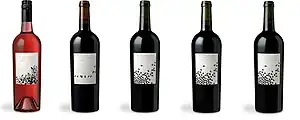 One red blend is called Arise. The name is taken from the Beatles' song "Blackbird". Arise is a blend of Merlot, Cabernet Franc and Cabernet Sauvignon. The label features nine blackbirds on a telephone wire in the position of the starting notes the Beatles' song.[1] Arise uses primarily Merlot grapes, rounded out with Cabernet Sauvignon and Cabernet Franc. It's harvested in the autumn and released two years later after being aged in half-seasoned and half-new French Oak barrels for 21 months.[18]