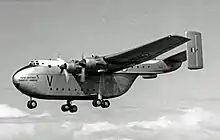 Within four weeks of first flying, the first prototype had flown 21 flight and completed all preliminary handling, performance, and load tests.[4] In September 1950, it was first exhibited to the public at the Farnborough Airshow, where an order for a second prototype was announced. Thereafter, it was flown to RAF Boscombe Down for evaluation by the Aeroplane and Armament Experimental Establishment; handling trials were successfully completed within a relatively short period of three weeks.[4] The prototype participated in competitive trials against an American Fairchild C-82 Packet. It also demonstrated its ability to transport heavy loads, including a 30-seat coach and a ten-ton excavator.[4]