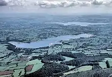 A variety of water birds can be seen around the lake including: great crested grebe (Podiceps cristatus) and little grebe (Tachybaptus ruficollis), cormorant (Phalacrocoracidae), mute swan (Cygnus olor), Canada goose (Branta canadensis), duck (Anatidae), shoveller (Anas clypeata) and gadwall (Anas strepera).[23] The common buzzard (Buteo buteo) can be seen on the surrounding hills and both Eurasian sparrowhawk (Accipiter nisus) and kestrel breed. Occasional visitors include: osprey (Pandion haeliatis), goshawk (Accipiter gentilis), Eurasian hobby (Falco subbuteo), nuthatch and great spotted woodpecker (Dendrocopos major). The ruddy darter dragonfly (Sympetrum sanguineum) can also be seen.[21] In the wood at the western end of the lake there are populations of badgers, roe deer (Capreolus capreolus) and foxes.[24]