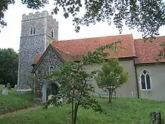 The tiny village nestles at the base of gentle hillside. The church tower is visible for some distance, rising out of the trees. The parish is long and narrow, stretching some three miles from its south-western limit, not far from Flowton Church, to its north-eastern extremity, beside the River Gipping near Claydon. The Grade I listed[3] church of St Mary The Virgin is set upon a grassy chalky bank beside a narrow lane, a little above the houses of its village and beside the former Rectory - a house with Dutch gables which stands at a considerably lower level. The east window of the church is a rare example in Suffolk[4] of a stepped triple-lancet window of the late Early English period (c.1250-80).[5] The congregation is supported from Bramford.[6]