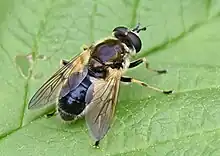 Blera badia, the Common Wood Fly, is a common species of syrphid fly first officially described by Walker in 1849.[1] Hoverflies get their names from the ability to remain nearly motionless while in flight. The adults are also known as flower flies, for they are commonly found around and on flowers, from which they get both energy-giving nectar and protein-rich pollen. The larvae are of the rat-tailed type, feeding on exuding sap or in the rot holes of trees.[3]