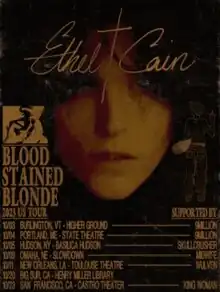 At the end of 2022, American singer-songwriter Caroline Polachek announced her Spiraling Tour, in which Cain performs at an opening guest.[4] In the first half of 2023, only months after finishing her previous one, Cain announced her second headlining concert tour, Blood Stained Blonde Tour, with North American dates on several festivals, such as Outside Lands Music and Arts Festival, Reading and Leeds Festivals, and others. She also announced dates opening for supergroup Boygenius in the United Kingdom.[5] The last shows in the United States were confirmed on July 24, along with the supporting acts: 9Million, Skullcrusher, Midwive, Wulven, and King Woman.[6]