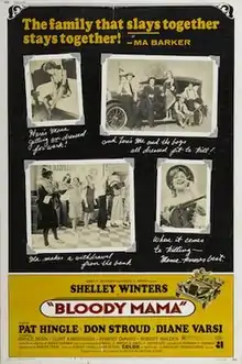 Bloody Mama is a 1970 American exploitation crime film directed by Roger Corman, and starring Shelley Winters in the title role, with Bruce Dern, Don Stroud, Robert Walden, Alex Nicol and Robert De Niro in supporting roles. It was very loosely based on the real story of Ma Barker, who is depicted as a corrupt, mentally-disturbed mother who encourages and organizes the criminality of her four adult sons in Depression-era southern United States.