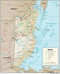 Map of Belize featuring Blue Creek Village