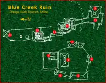 At some point during 500 A.D., Blue Creek is believed to have been taken over by a larger neighboring political force.[11] This is evident through the lack of construction and the presence of jade after this period.[11] The other major component of the Blue Creek site is known as the Western Group by historians.[11] Elite residences generally were differentiated by historians from examining their architectural scale and their location with regards to the center of the district as well as essential resources.[11]