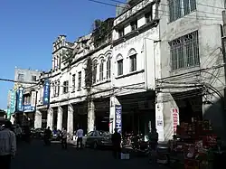 Much of the area comprises tong lau-style, buildings with European fusion-type architectural facades with Indian and Arabic influences. The buildings are almost all painted white, and are usually no more than a few storeys tall. Many were dilapidated. However, much of the area has now been restored. The streets are mostly narrow with many winding alleyways. The area is populated almost entirely by indigenous Hainan people.