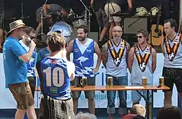 The game is a long-established tradition amongst many Australian amateur Rugby Union leagues. Players receiving points for their on field performance then become the participants for the boat race after, but may sub out for injury. The game is played in Germany as a team version of Bierjunge (lit. 'beer boy'). "Bierjunge" is a superior fraternity century-long traditional "game" from Germany. The size ranges from 0.25 to 1l (inferior fraternities obviously restrains to lower sizes, but extremes ranges up to a beer crate of about 20 beer bottles; 10l).