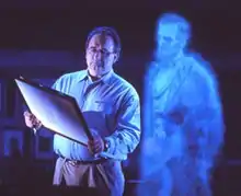 ![]() Bob Rogers interacts with a ghostly Abraham Lincoln. | |