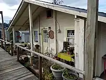 After meeting Ray Skjelbred the first time at the Great Excelsior Jazz Band gig; West was invited to jazz events at Ray's houseboat on the Wandesforde Dock on Fairview Ave. West bought the houseboat from Ray in 1972.[16] West lived there for 47 years. His neighbors on the dock became accustomed to his late night record-listening and jam sessions. Jazz and blues musicians visiting Seattle came to West's houseboat to relax before and after shows. West also give the house to visiting musicians, while West lived with his family. Various people who stayed at the houseboat included Bukka White, Pete Seeger, Son House, Sunnyland Slim, and many others.[17][18] Every 4th of July through 2015 he had a special party for people who wanted to hear live blues and jazz and see the fireworks go off over Lake Union. For that party, he would cook up a big pot of red beans and rice with other victuals, stock up beer, and then people started arriving in the afternoon, with many staying well after midnight. Entertainment was live music and also projected 16mm jazz films. West also had a wooden rowboat that guests could take out onto Lake Union for a better view of fireworks and other boats.[6]