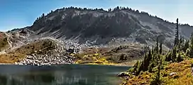 Bogachiel Peak is a 5,478-foot (1,670 m) peak in the Olympic Mountains of Washington, U.S.. It is located in Olympic National Park, and is a high point on the High Divide separating the Hoh River and Sol Duc River valleys, and forming the southern rim of Seven Lakes Basin. The peak is situated at the headwaters of the Bogachiel River. The name "Bogachiel" is a corruption of the Quileute words bo qwa tcheel el, or /boqʷač'íʔl/, from /bó:q'ʷa/, "muddy", and /číʔlowa/, "water", meaning "gets riley [turbid] after a rain", "muddy waters", or, less likely, "big river".[3]