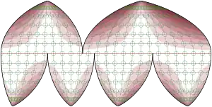 θ can be solved for numerically using Newton's method. The adjustment k shifts the points of no distortion to 40°N/S at each lobe's central meridian.[3]