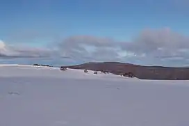 Mount Bogong, the highest mountain in Victoria, is just north of the High Plains. Technically it is not part of the high plains because it is separated from them by the Big River. There are several huts on the mountain, the earliest of which was built following the death of a skier in 1936.[12] Mount Feathertop is a much more foreboding summit in the west of the Bogong High Plains. It is a popular bushwalking destination due to its proximity to Mount Hotham but can also be approached from Harrietville.[13]