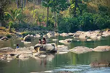 The predominant ethnic group in the Bolaven Plateau is the Laven, though other Mon-Khmer ethnic groups reside in the area including the Alak, Katu, Taoy, and Suay.[4] According to CPA Media, "all of these people follow animist belief systems" with some groups practicing animal sacrifices. However, more recently, some of these minority communities have begun to adopt Buddhist beliefs because of their contact with Lao Loum.[6]
