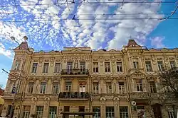 33The former building of Imperial University of Warsaw, is now one of the buildings of the Southern Federal University. The Imperial University of Warsaw was evacuated from Poland to Rostov-on-Don during the World War I. The house was built by the architect I. E. Cherkessian in the Art Nouveau style. It is considered to be an object of cultural heritage.[6]