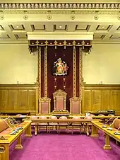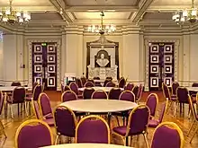 Internally, as originally constructed, the building was arranged around the central Great Hall, which was 112 feet (34 m) long by 56 feet (17 m) wide; it contained a sizeable organ by Gray and Davison and was designed to seat 1,500 people.[11] There was a Sessions Court to the west; the Council Chamber was on the upper floor to the north and the Mayor's state rooms were on the same floor to the east (including a banqueting room and, directly under the clock tower, a grand reception room). The ground floor had offices and rooms for various officials and users of the Court, and to the east the Borough Surveyor and Borough Treasurer's offices. The basement level included a cell block directly below the courtroom, offices and amenities for the police (including a drill-hall directly below the Grand Hall), along with kitchens and storerooms and various civic amenity offices (which could be accessed directly via their own entrances by members of the public).[11]