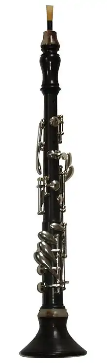 "Essentially a shawm or oboe--that is, a pipe with a conical bore, a double reed, and finger-holes...traditional Breton bombardoù are probably very close to the original progenitor of the oboe family."[1] The bombard is an instrument that has been in constant evolution, with many different keys developed as well as sophisticated silver key-work enabling chromatic possibilities. Milder versions in lower ranges such as Youenn Le Bihan's "piston" (an oboe/bombard hybrid, typically based in the key of Re/D) have been developed for use in mixed ensembles. A class of professional musicians and instrument makers has emerged, as well as standardized reeds and commonly available tutorial materials. Today, both the biniou and bombard are played in combination with an unlimited number of instruments (voice, saxophone, piano, organ, clarinet or treujenn gaol, fiddle, flutes, guitar, percussion… ) in fest-noz,[lower-alpha 2] groups and ensembles of all styles - from classical to folk, rock, pop, punk, metal - in arrangements of traditional Breton dance tunes or in new compositions.