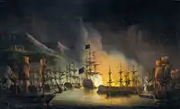 500[8]-5,000 total military and civilian casualties (including 300-2000 killed) 4 frigates destroyed 5 corvettes destroyed 28 gunboats sunk 12 gunboats beached[9][10][11] | ||||||