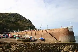 The pier was constructed in 1872[3] by the States of Jersey for fishing boats, and also to serve the quarry of Mont Mado up above the bay.