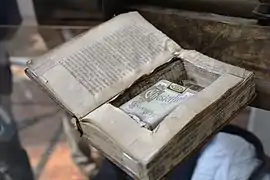 The custom of binding several wax tablets together (Roman pugillares) is a possible precursor of modern bound (codex) books.[13] The etymology of the word codex (block of wood) also suggests that it may have developed from wooden wax tablets.[14]