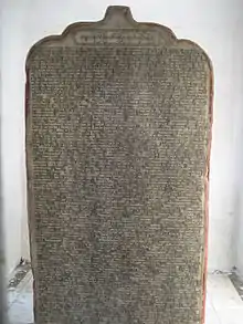 Goddess Saraswati image dated 132 AD excavated from Kankali tila depicts her holding a manuscript in her left hand represented as a bound and tied palm leaf or birch bark manuscript. In India a bounded manuscript made of birch bark or palm leaf existed side by side since antiquity.[36] The text in palm leaf manuscripts was inscribed with a knife pen on rectangular cut and cured palm leaf sheets; colouring was then applied to the surface and wiped off, leaving the ink in the incised grooves. Each sheet typically had a hole through which a string could pass, and with these the sheets were tied together with a string to bind like a book.