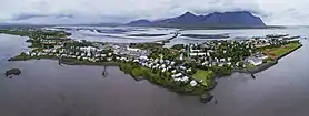Aerial photograph showing Borgarnes and Borgarfjarðarbrú