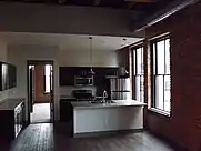 The three-story building is the only remaining portion of Born Capital Brewery, once one of four German breweries in the area. The building was completed in 1895.[3] It later became a Salvation Army thrift store. The structure was sold for redevelopment in 2007, and added to the National Register for tax credits in 2009. Redevelopment into apartments began around 2011. The $10 million project created 47 apartment units. The exterior was left largely unchanged, and interior beams and walls were kept.[3]